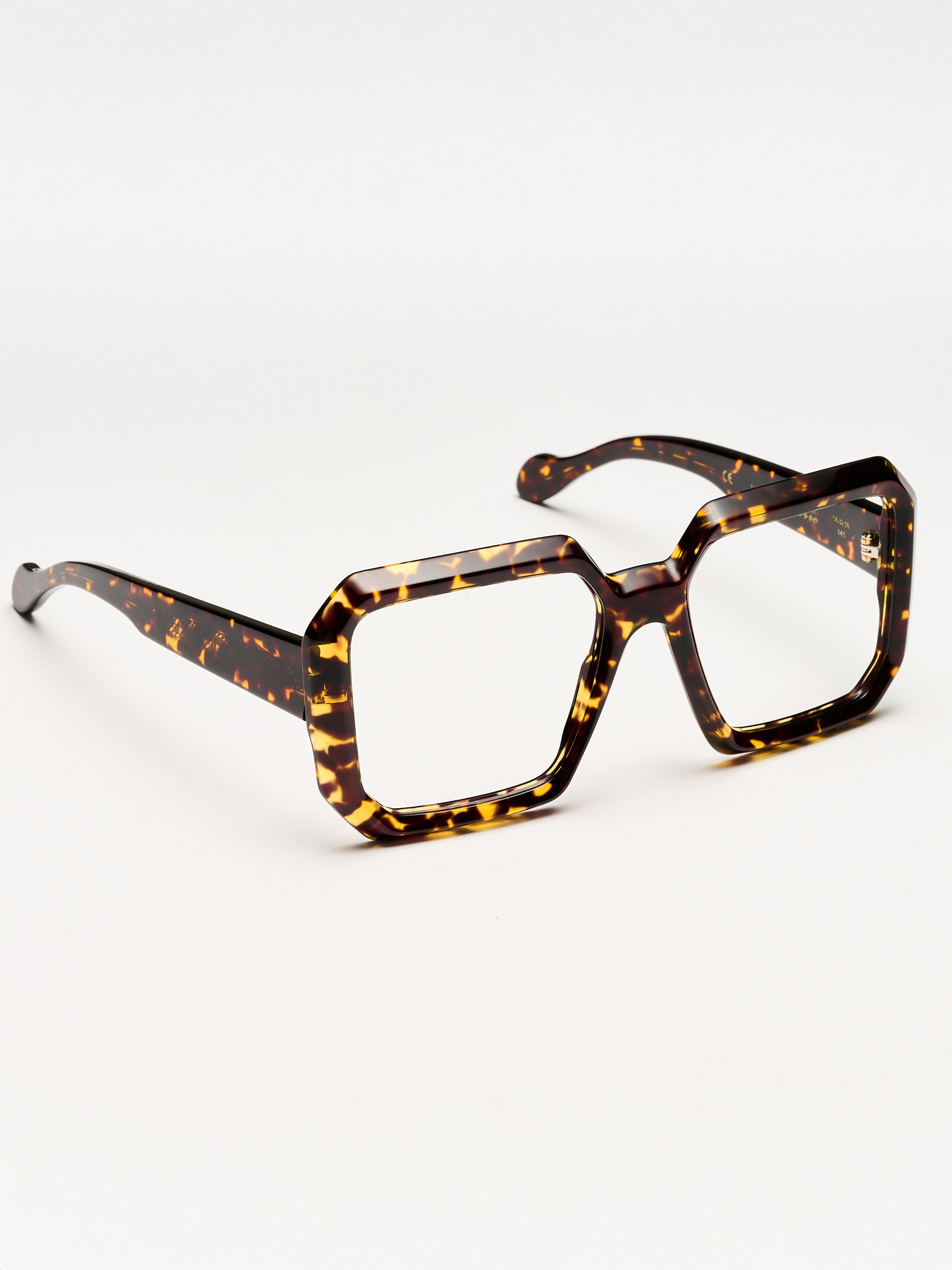 High-quality acetate frame featuring a geometric, oversized square front that gives the model a bold and contemporary look. The temples are designed to ensure a stable and comfortable fit for everyday use. The structure combines durable materials and precise finishes, offering an accessory that is long-lasting and visually striking.