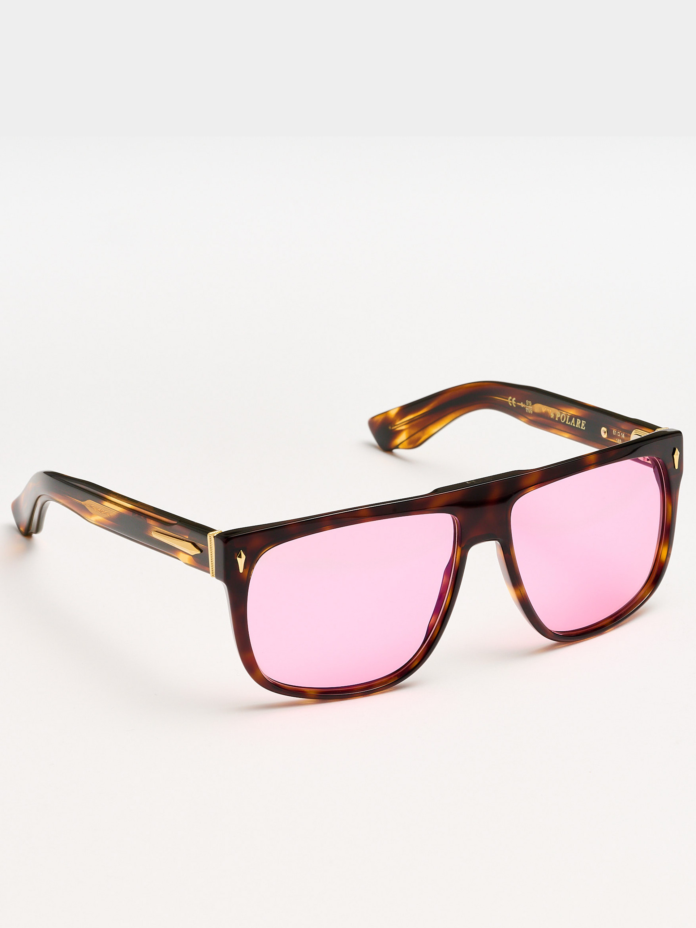Volumi architettonici e proporzioni ricercate si fondono in una montatura realizzata con acetati d’eccellenza, impreziosita da un raffinato dettaglio gioiello incastonato sul ponte: un segno distintivo, pensato per riflettere la luce con grazia e intensità.