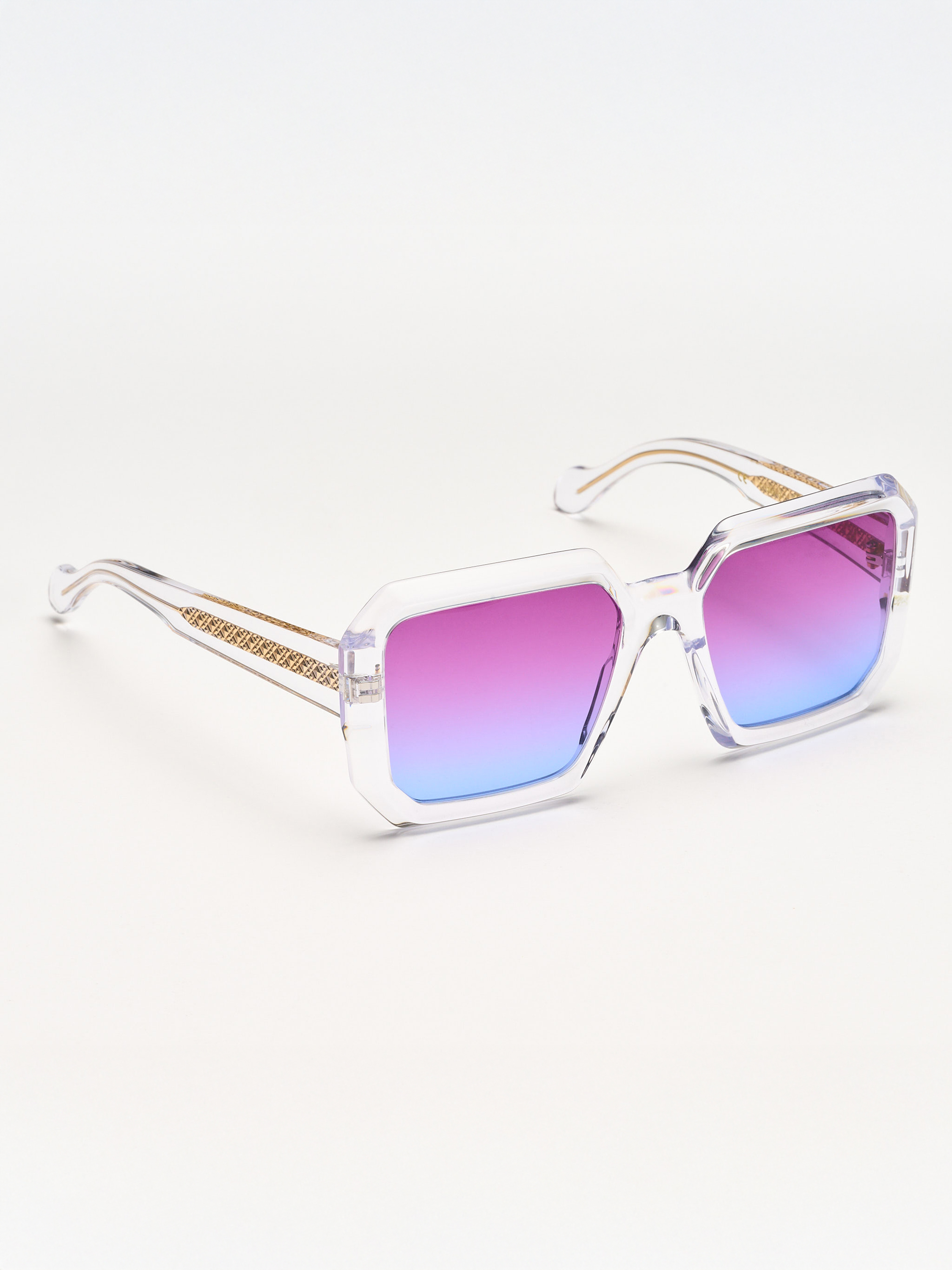 Montatura in acetato di alta qualità, con frontale geometrico di forma squadrata oversize che dona al modello un look deciso e contemporaneo. Le aste sono progettate per garantire una calzata stabile e confortevole durante l’utilizzo quotidiano. La struttura combina materiali resistenti e finiture di precisione, offrendo un accessorio durevole e di grande impatto estetico.