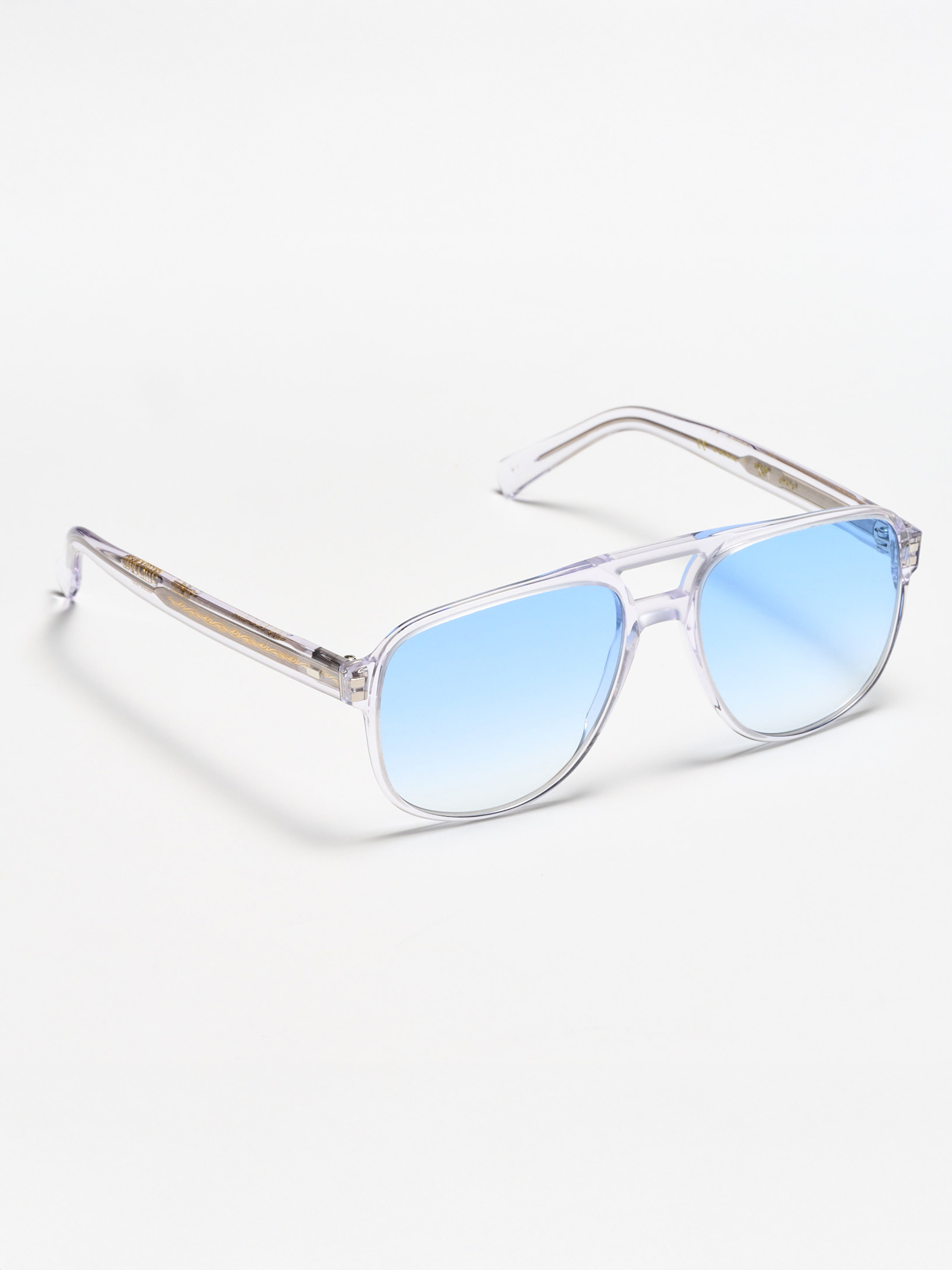 La montatura presenta cerniere affogate sul frontale e rivettate sulle aste, espressione di precisione artigianale e solidità costruttiva. Le linee sono fluide, la struttura equilibrata, ogni elemento rifinito a mano per garantire comfort, durata e coerenza estetica.