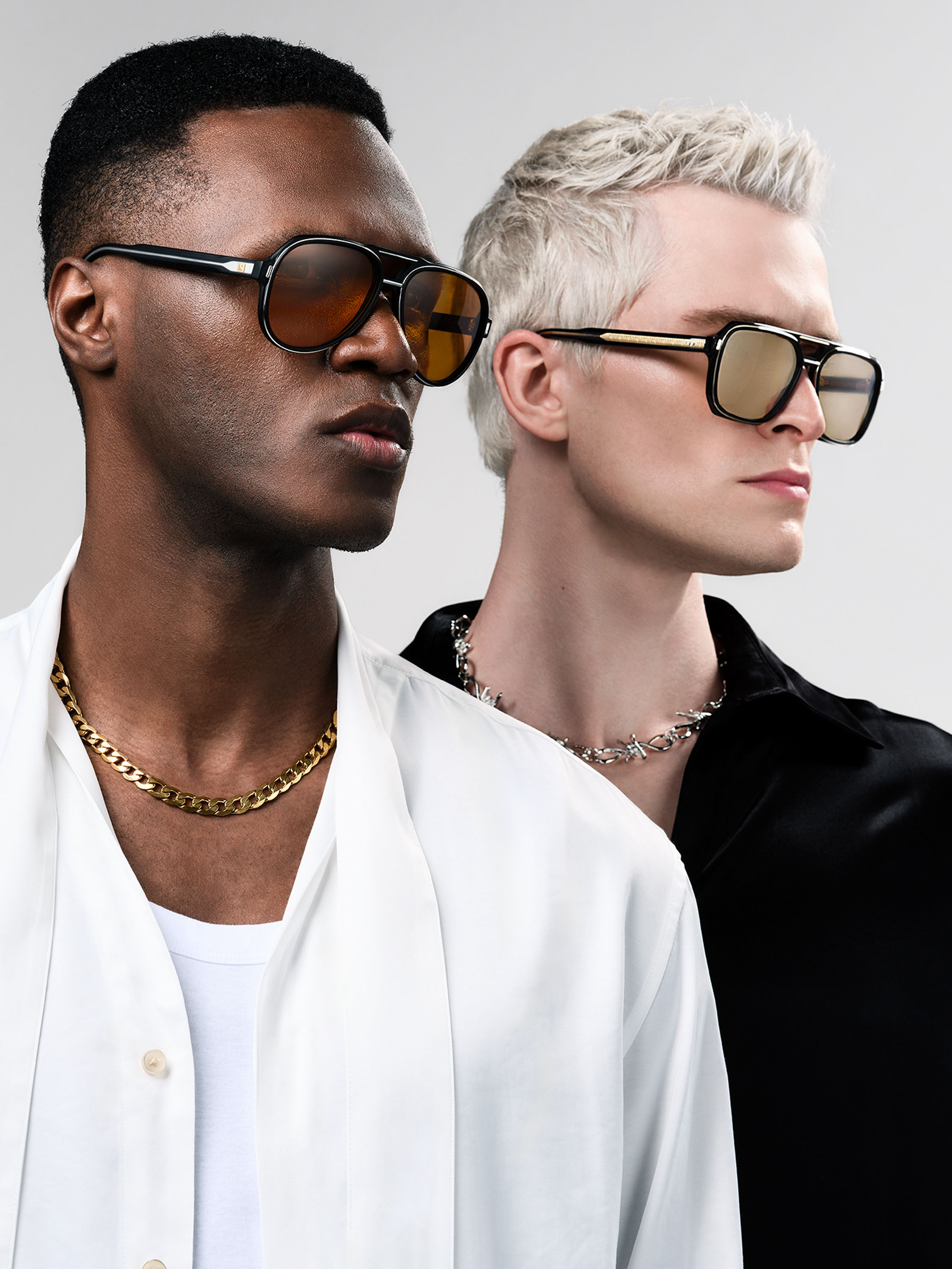 Un occhiale dal carattere deciso, con un’incastonatura esterna in metallo/oro che esalta il design, dando vita al concetto di un occhiale dentro un altro, e incorniciando in modo eccezionale la vista di chi lo indossa.