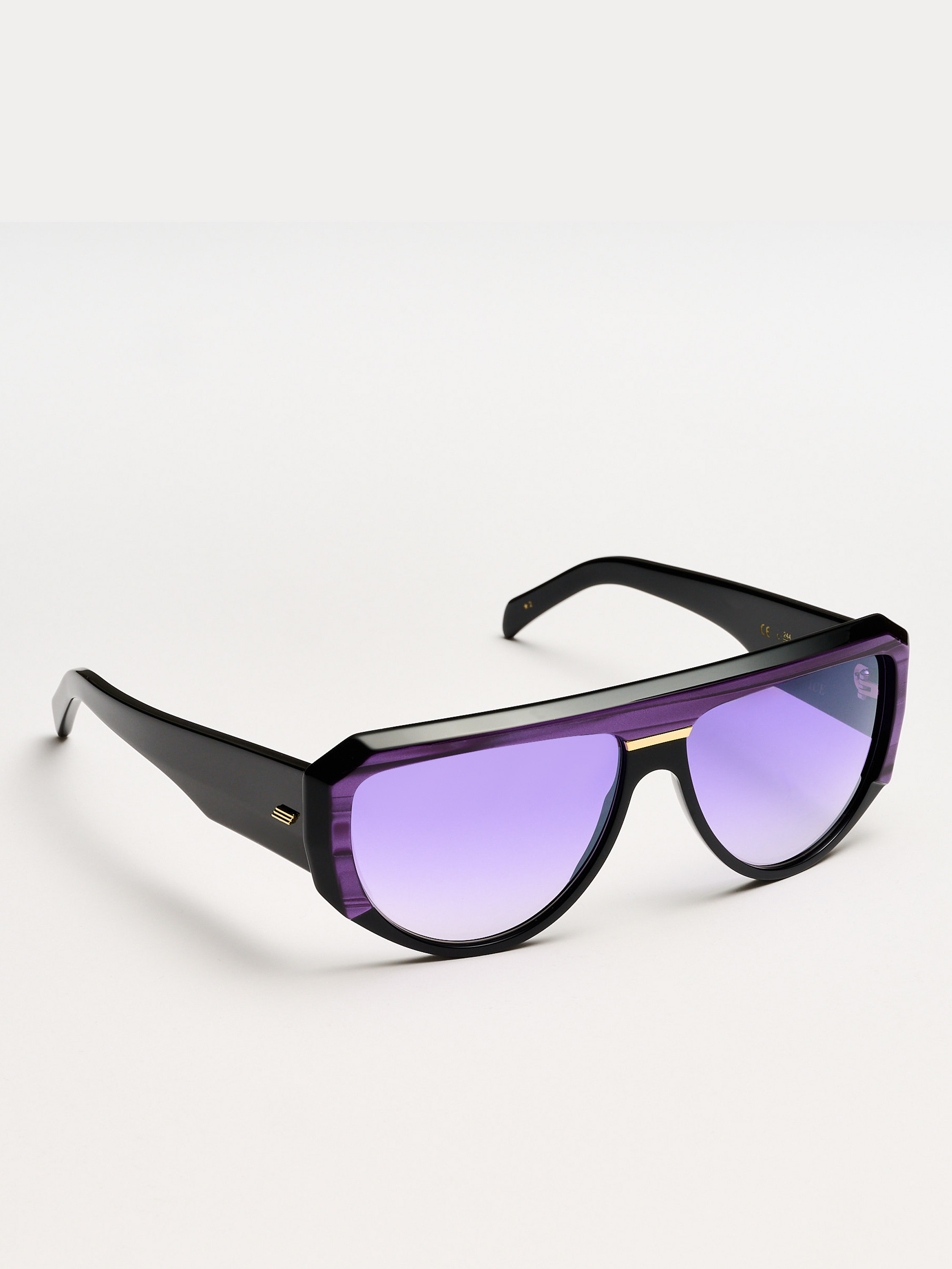 Un gioco armonioso di volumi e contrasti, scolpito negli acetati e impreziosito da un abbellitore incastonato sul ponte, dettaglio magnetico che cattura lo sguardo e ne amplifica la forza.