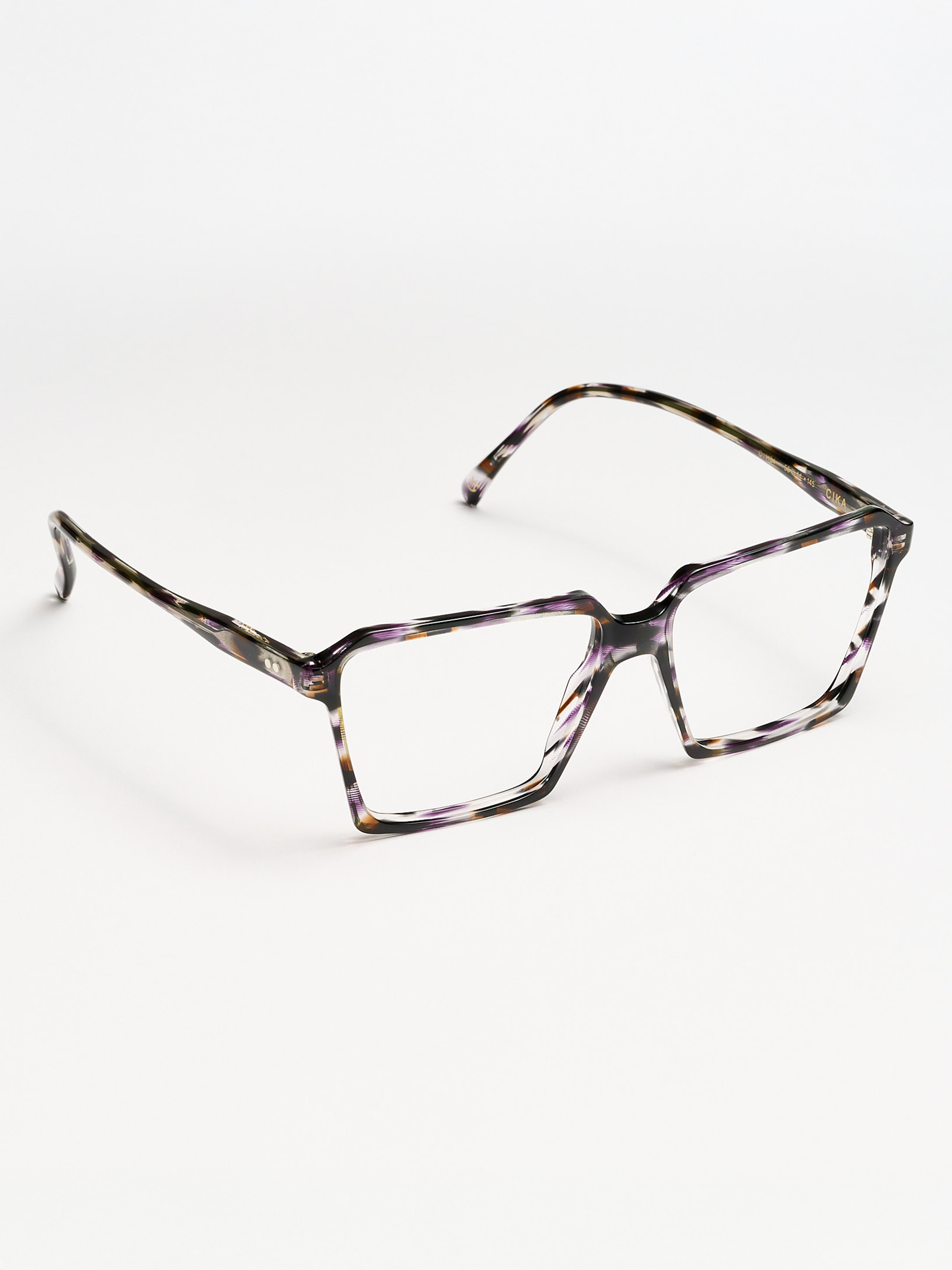Cika è realizzato in acetato Mazzucchelli 100% italiano, scelto per la sua qualità e brillantezza. La montatura squadrata e leggera esprime eleganza e personalità grazie alle aste arricchite da dettagli metallici finemente lavorati. Ogni elemento è rifinito a mano, per garantire comfort e perfezione estetica in ogni dettaglio.